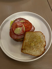 1歳児の食事としてはパンが出てくるのでパン、夫のツナステーキを少し食べました。